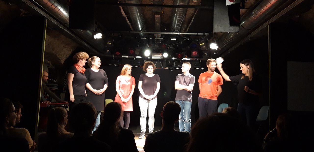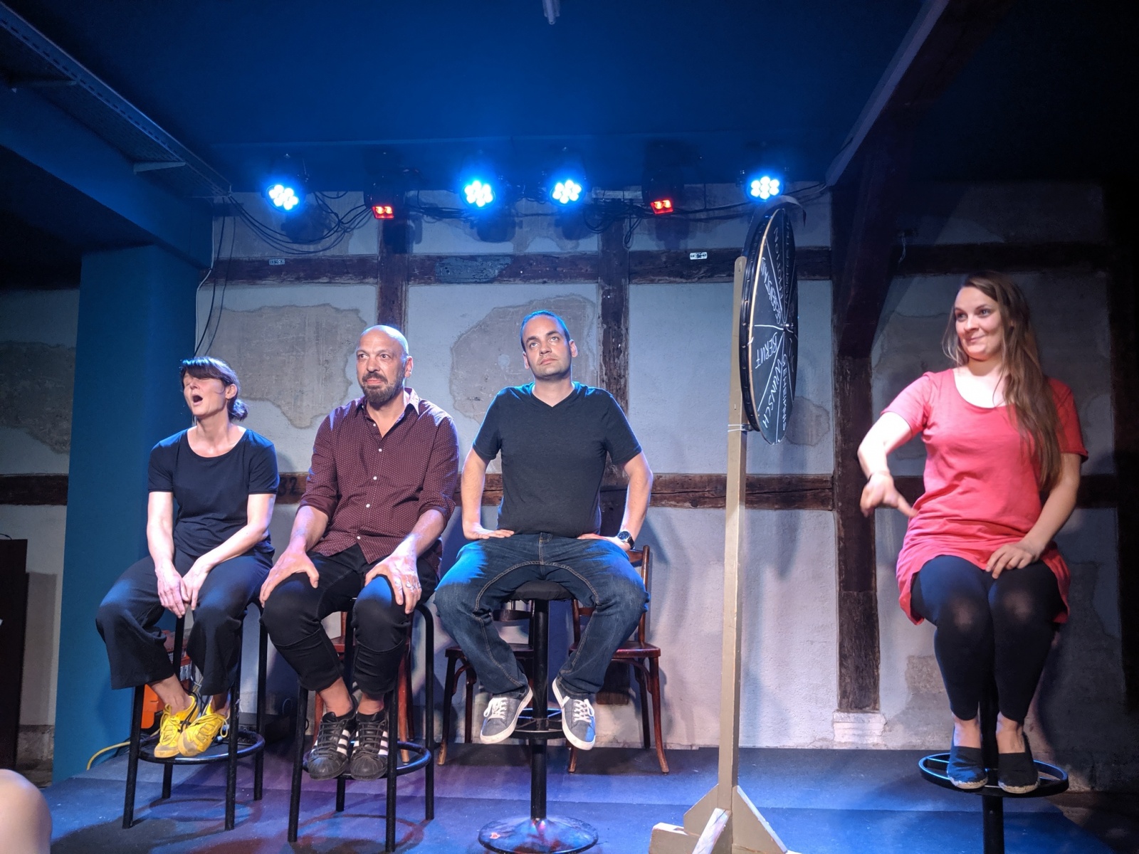 Einen freudvollen Abend mit einem wunderbaren Publikum hatten wir am 30 Oktober im Dynamo. Wir gingen als Sieger aus dem Brot&Spiele Match gegen das IMPROCHÄLLER-Team hervor. Wir haben damit offiziell unser erstes Match gewonnen, dem hoffentlich noch viele folgen werden. Ob der Sieg so verdient war, sei dahingestellt. Neben den harten Bandagen hatten wir aber auch einen Fairplay Pokal dabei, den wir dem Heimteam am Ende völlig verdient überreichen konnten.