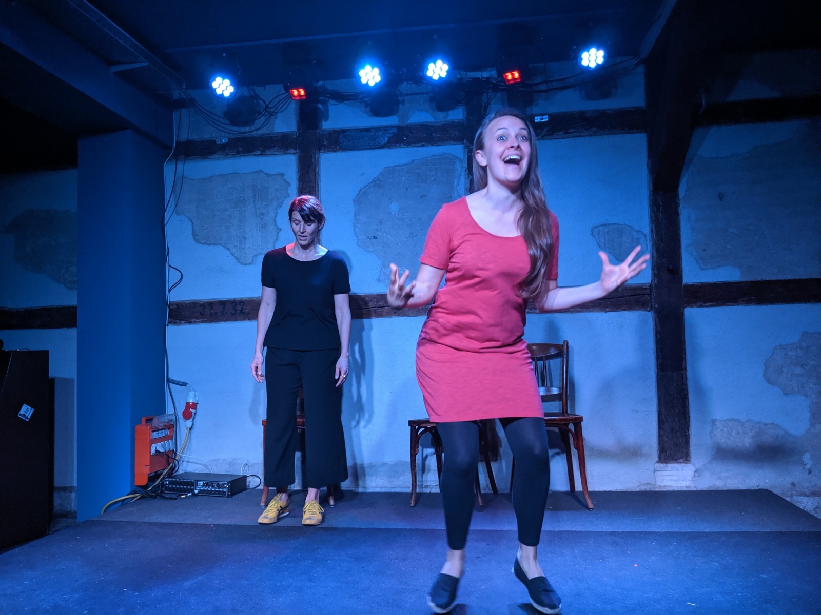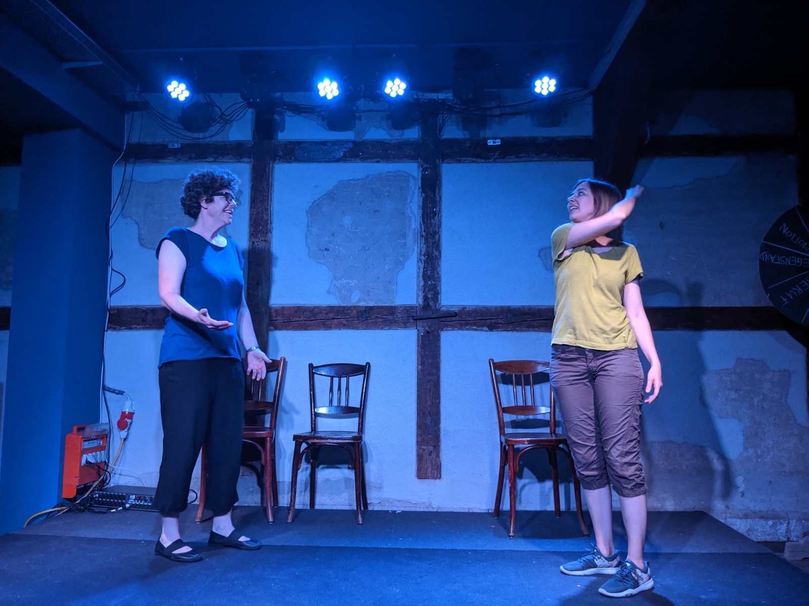 Am 25. Mai spielten Berta Pan ihr neues Format «Eyes Wide Open». Wie immer im Improtheater, wussten sie vorher auch dieses Mal nicht, was genau sie spielen. Sicher war nur, dass sich die Spielenden während den Szenen immer wieder mal in die Augen schauen werden.